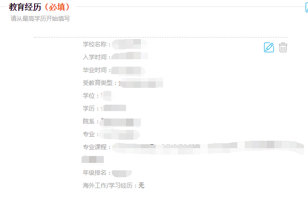 教育经历填写(必填,从高中起填即可)